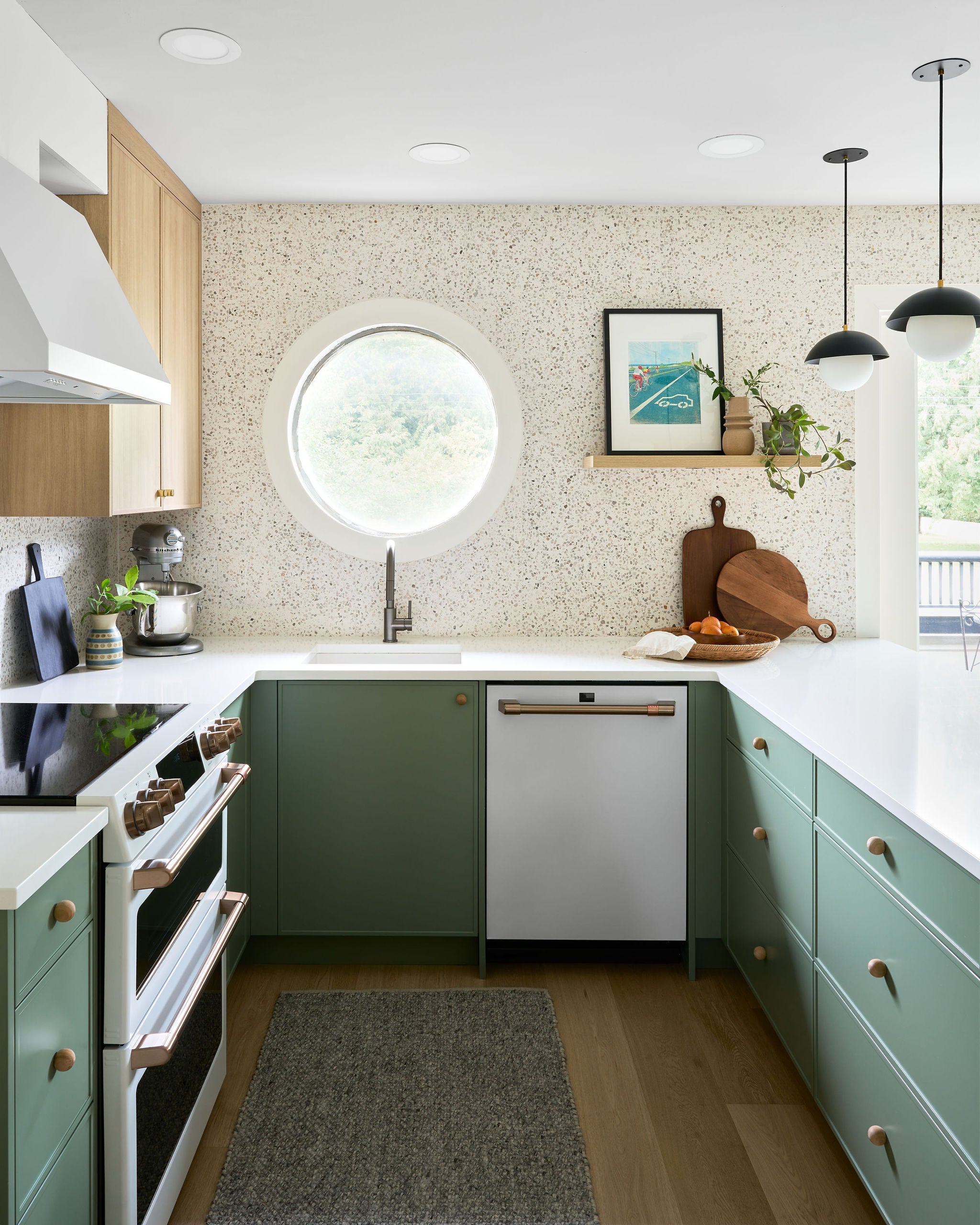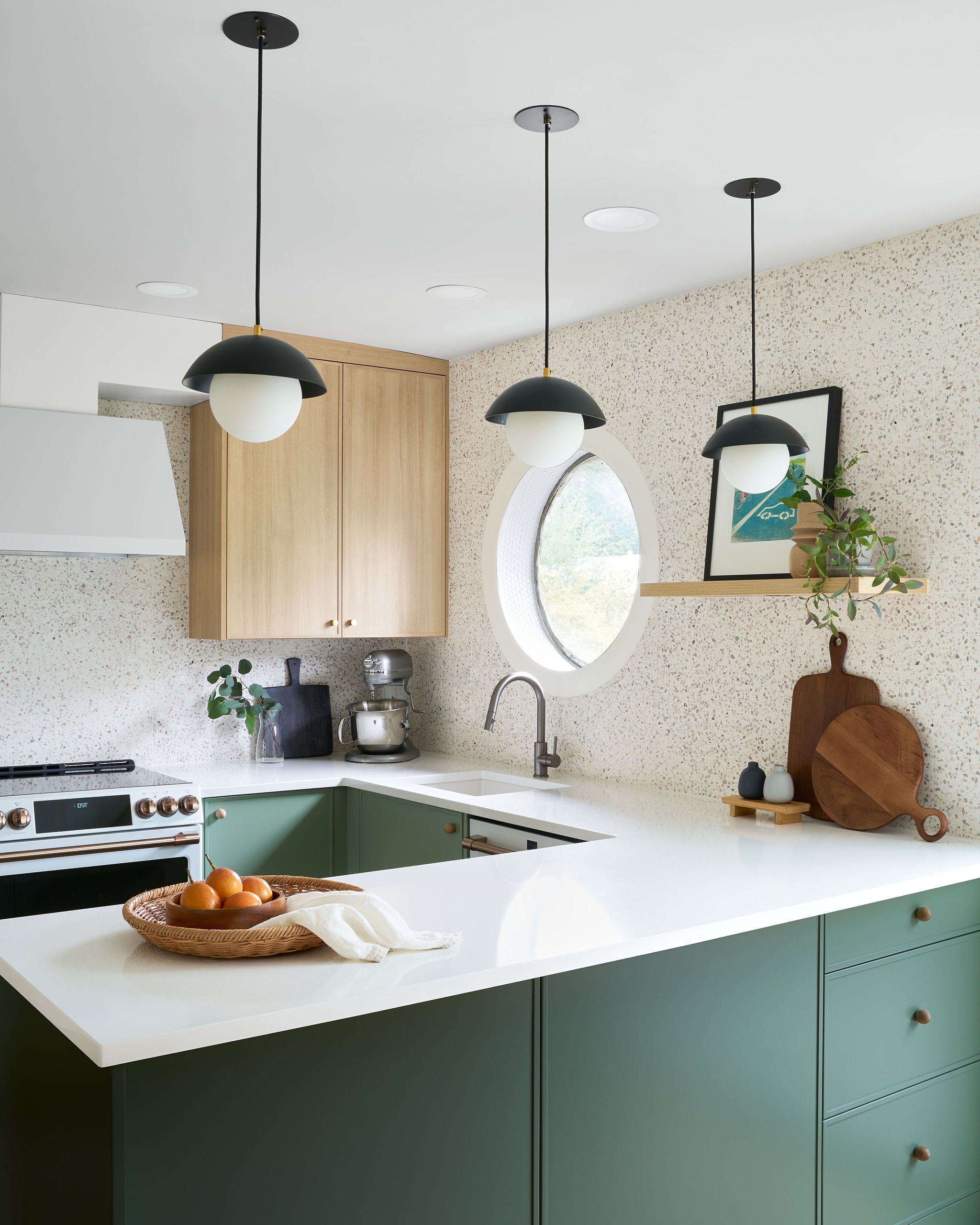 This U-shaped kitchen suffered from the box-store blues after a "cheap and cheerful" style renovation done wrong. While the layout was functional, the vibes were way off for this colour-loving family. They sought personality and they got their wish by collaborating with design partner Studio Hemma. The results elevated their lackluster kitchen into a drool-worthy one (that round window alone!).