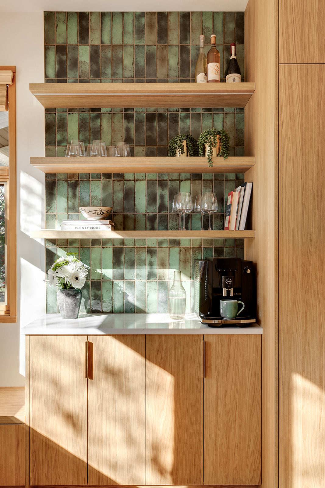 The final design seamlessly blends form and function, offering an inviting yet refined space for cooking, entertaining, and daily rituals. A dedicated espresso bar enhances the morning routine, while open shelving allows for curated displays of loved objects and greenery. The removal of the partial wall opened up the space, allowing the kitchen to flow effortlessly into the rest of the home. This reimagined kitchen now stands as a true reflection of the homeowners' personal style—an elegant, highly functional space that honors the way these homeowners have always dreamed of living in their home.