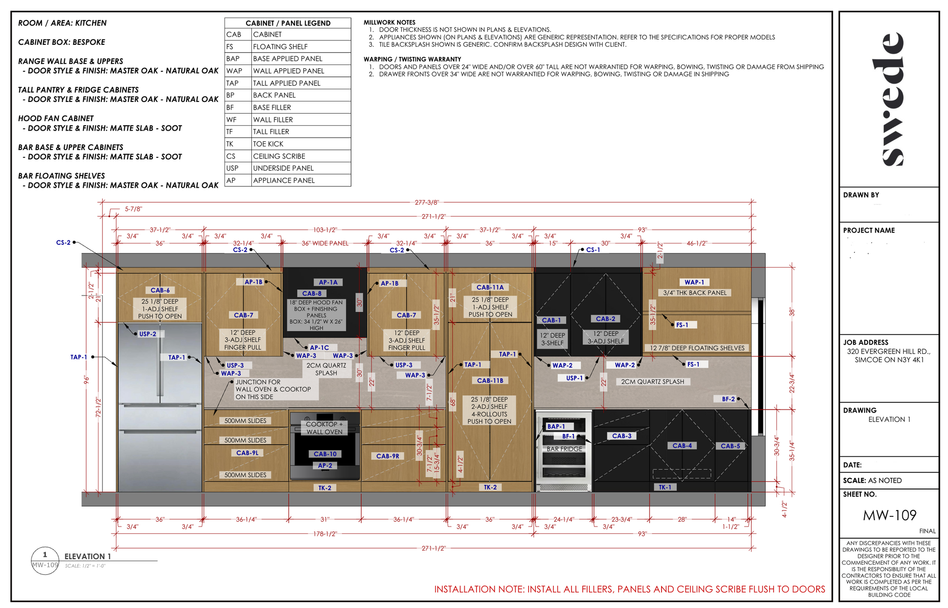 Once your onsite analysis has been completed, we will produce a set of construction drawings with detailed elevations and plan views of your cabinetry. We will provide you with a set of these drawings and if any changes or additions are required, an updated final price will be communicated. Pricing is subject to change due to onsite changes, or any cabinetry or trim details that are added during this phase.