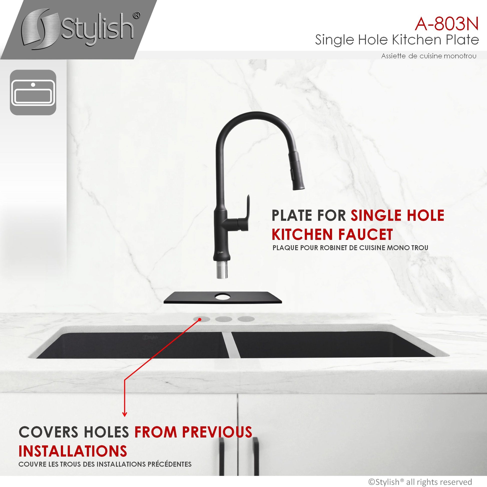 Stylish - Single Hole Kitchen Faucet Plate in Matte Black