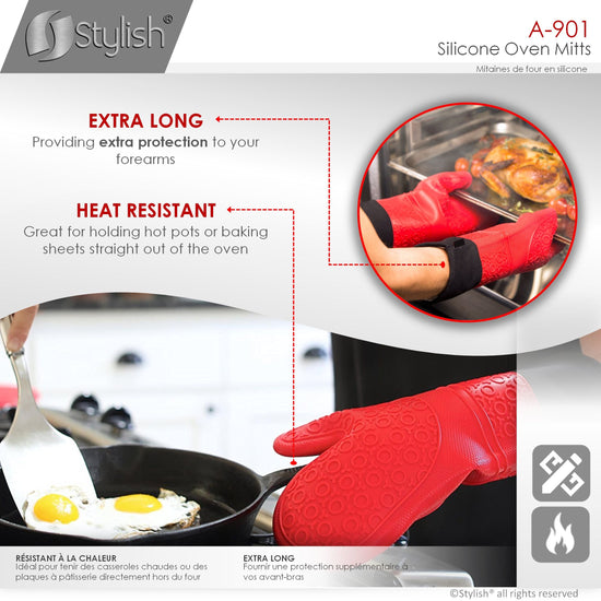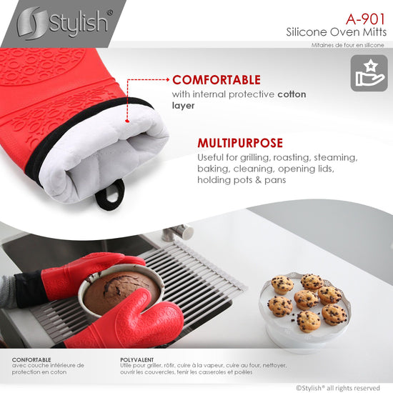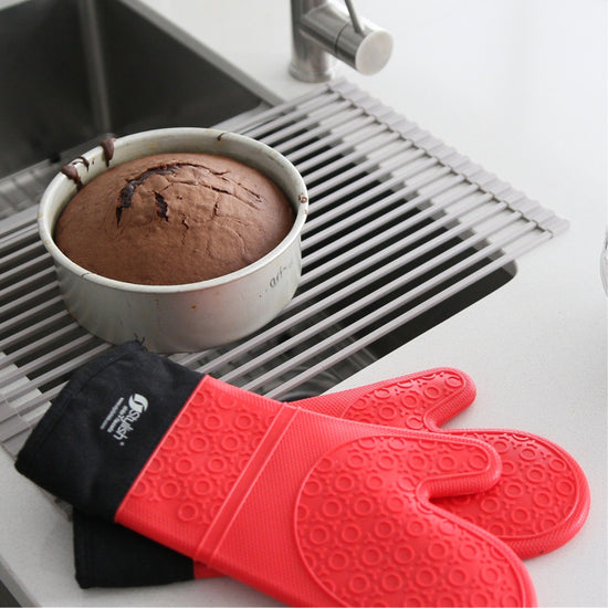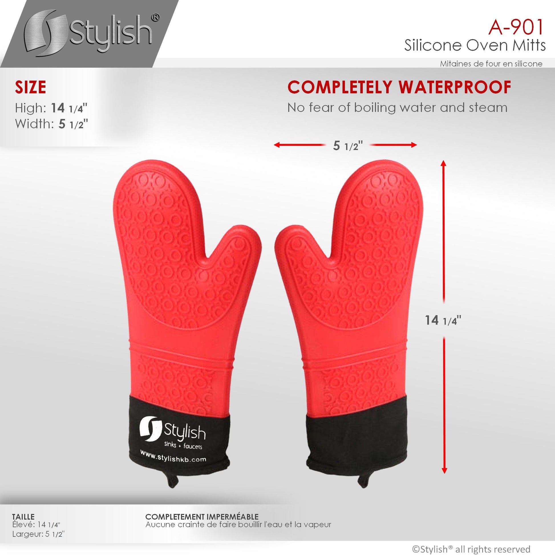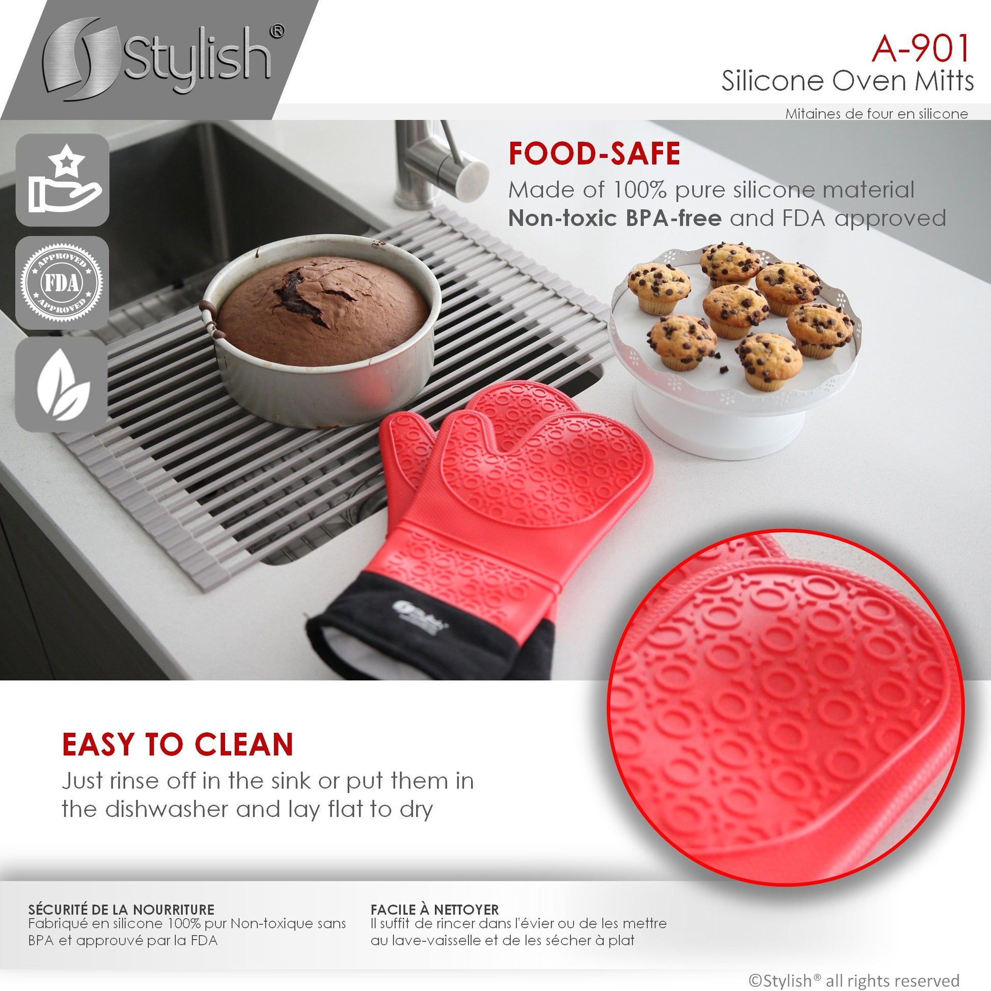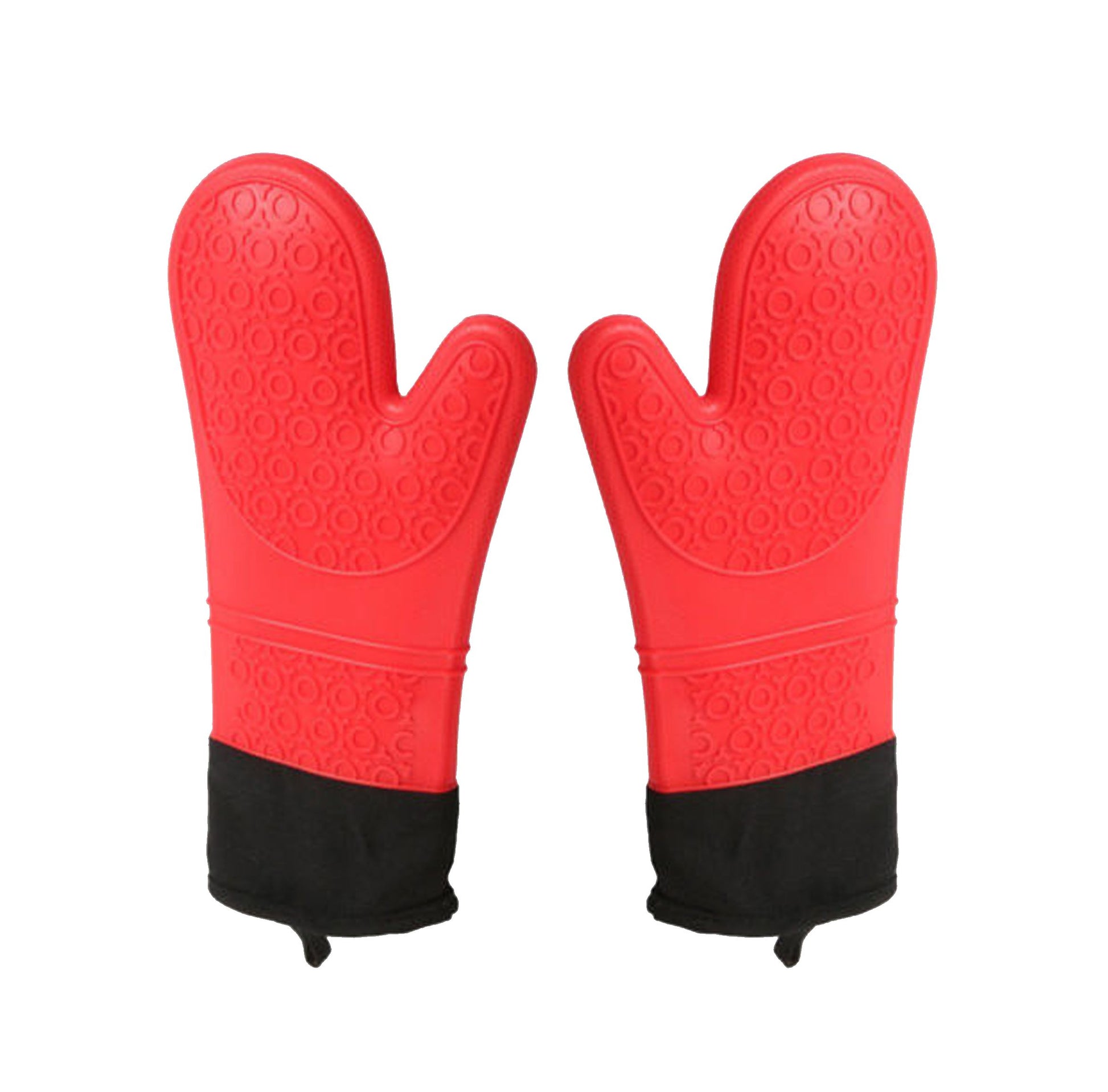 The luxurious inner quilted cotton lining makes our gloves so comfortable you won't want to take them off! This Silicone oven mitts resist steam and heat up to 450F / 230°C. These gloves effectively prevent burns related to boiling water, spattering oil, hot cookware, or roasting food. Each of our silicone gloves comes with textured gripping surfaces. You can safely pick up hot items from the oven or microwave with these non-slip heatproof mitts. The non-slip grip also helps you open slippery jars! These gloves are waterproof, stain resistant, BPA Free. They are great for handling hot or frozen foods directly while protecting your hands from spills and burns. This professional silicone oven mitts give you extra protection from burns and scalds during all your cooking activities. These oven gloves are made from 100% FDA-approved silicone, making them non-toxic and waterproof.