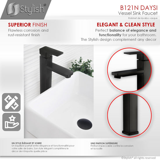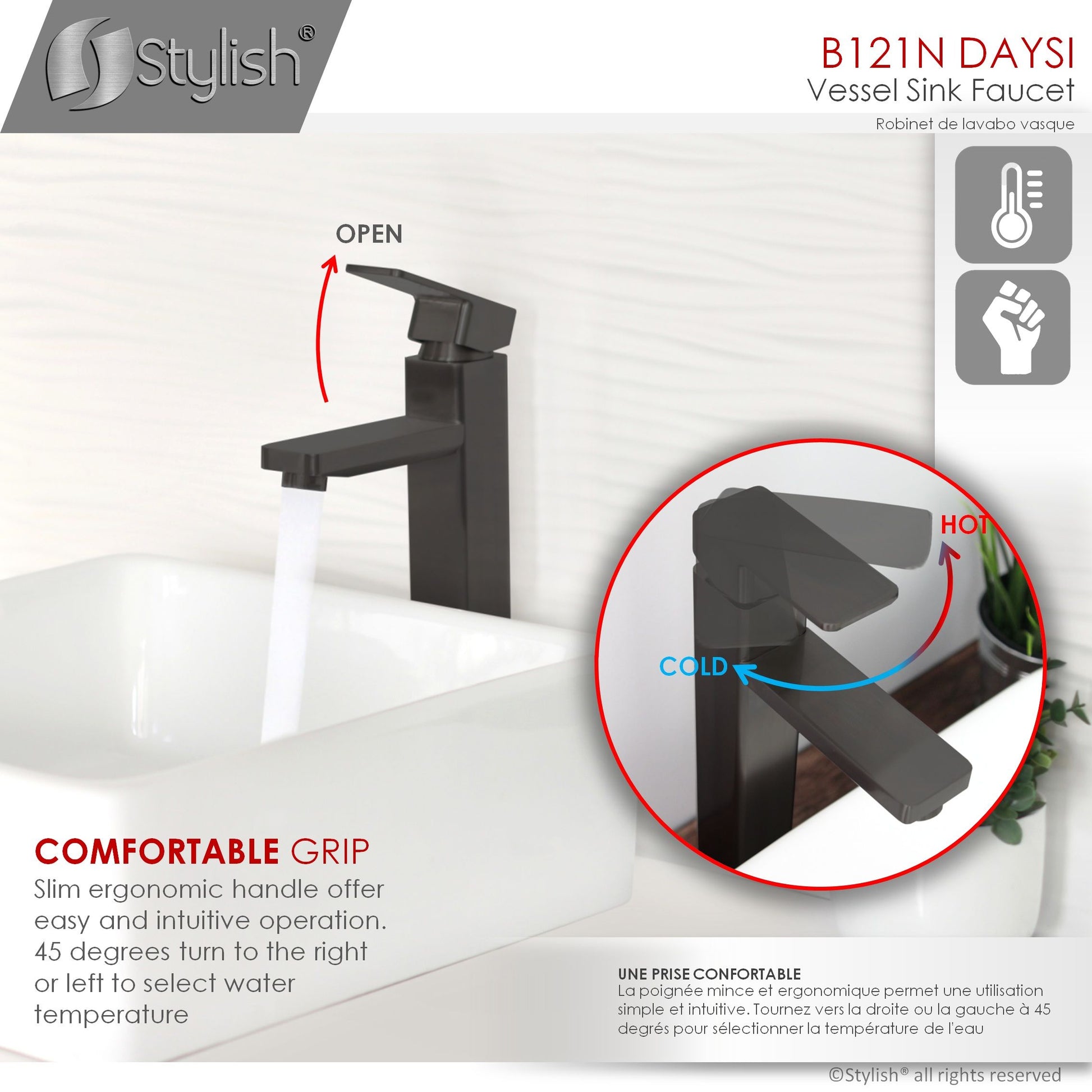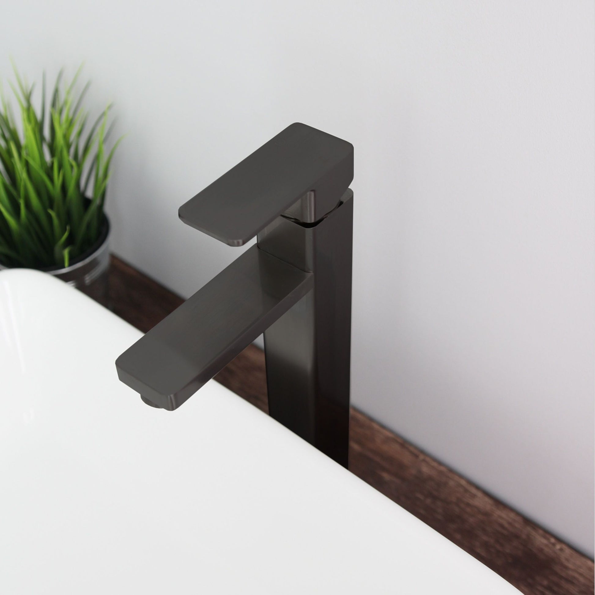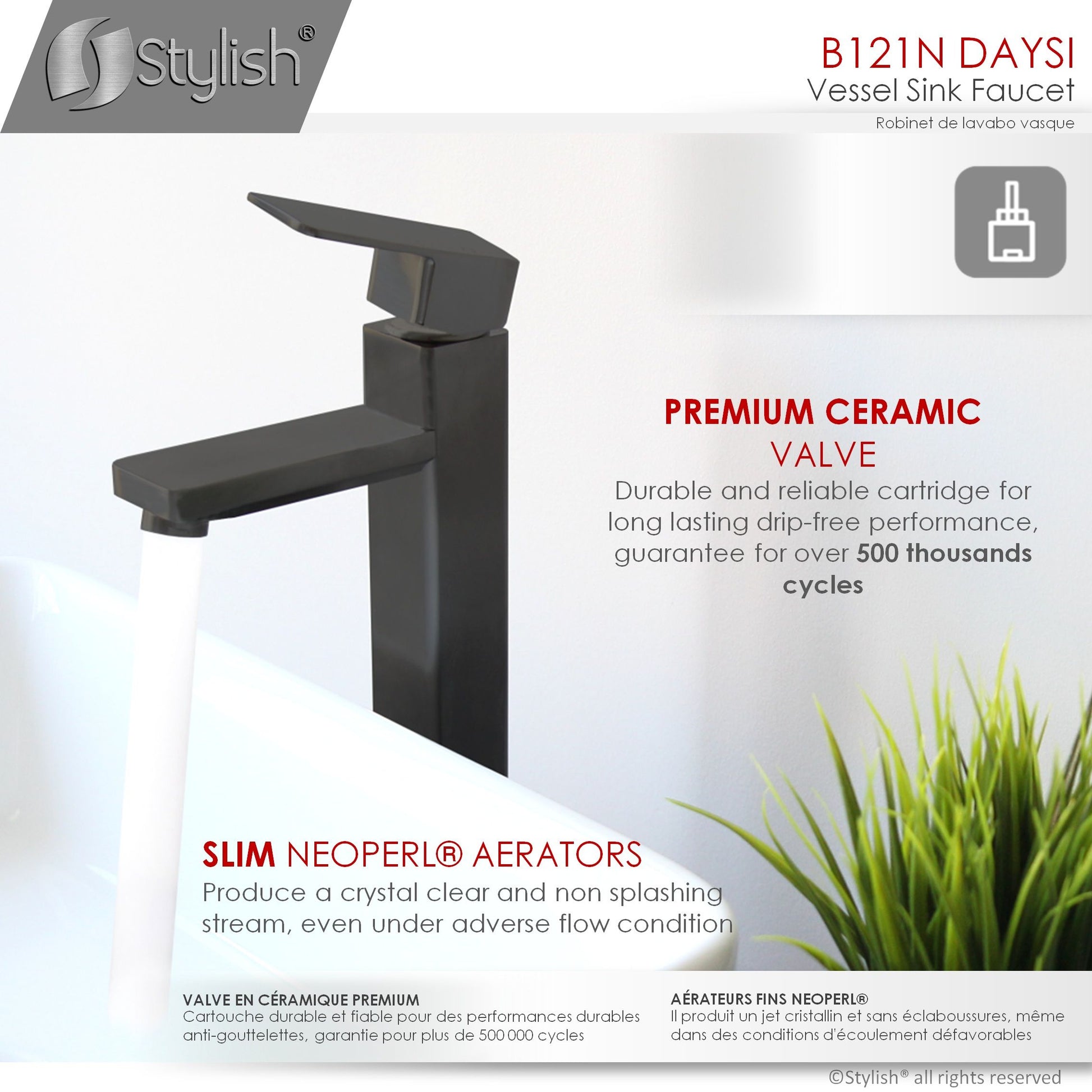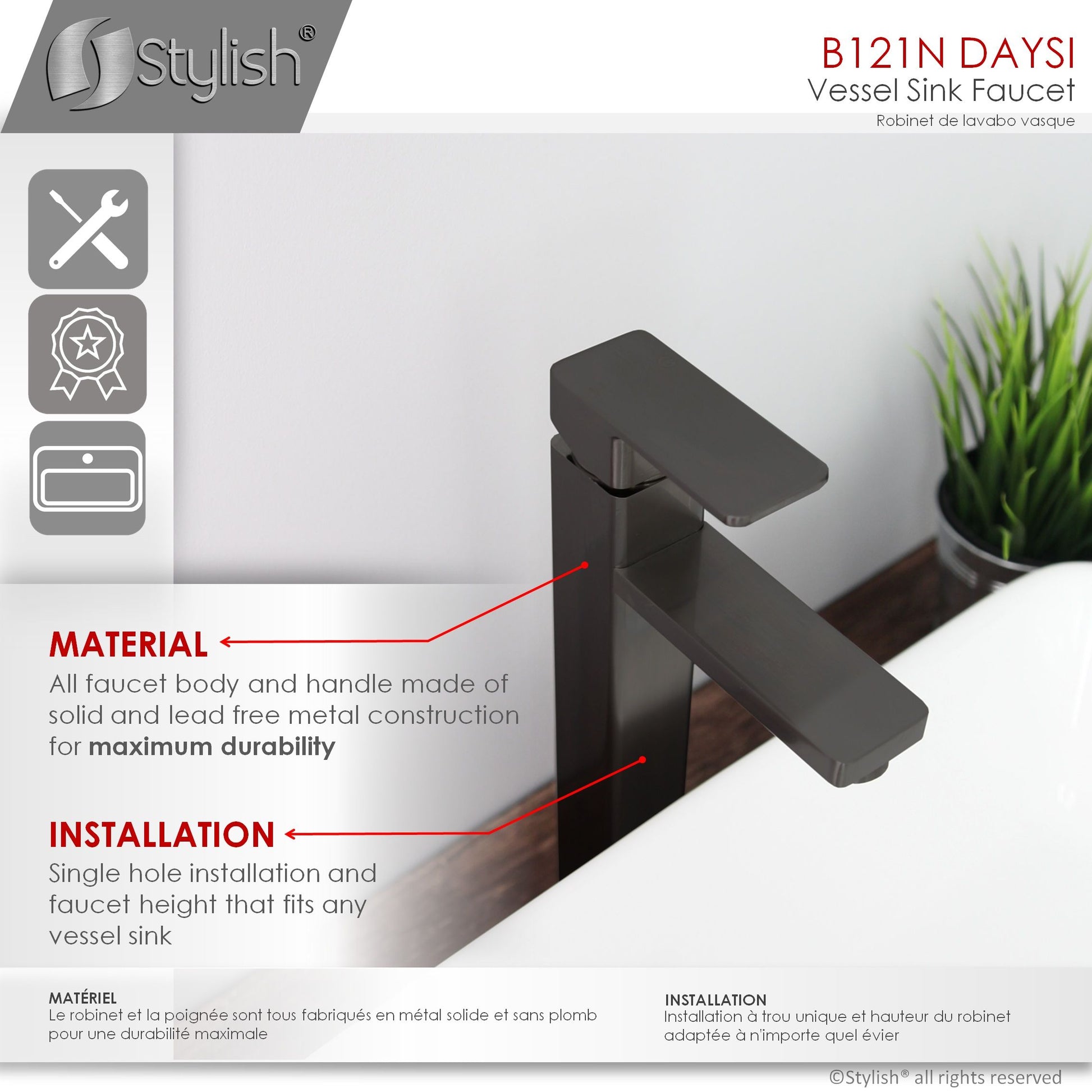 Add equilibrium and elegance to your bathroom with the beautiful single handle vessel sink bathroom faucet. The sleek rectangular shape, the rounded edges and the contemporary flare makes this Stylish Vessel Bathroom Faucet a brilliant addition to your bathroom. This vessel sink faucet features ceramic disc cartridges and solid brass construction for longevity and watertight functionality. This bathroom faucet is made using top-quality components, including a ceramic cartridge for reliable drip-free use and a best-in-industry aerator to reduce water waste without compromising pressure. Our bathroom faucet is made from solid brass and comes in a chrome colour. Designed for a single hole installation with integrated hot-cold supply lines for standard US and Canada plumbing connections. It features a sleek single lever handle for easy operation and temperature control. Smooth surface plating not only prevent scratches, but it is also easy to clean up.