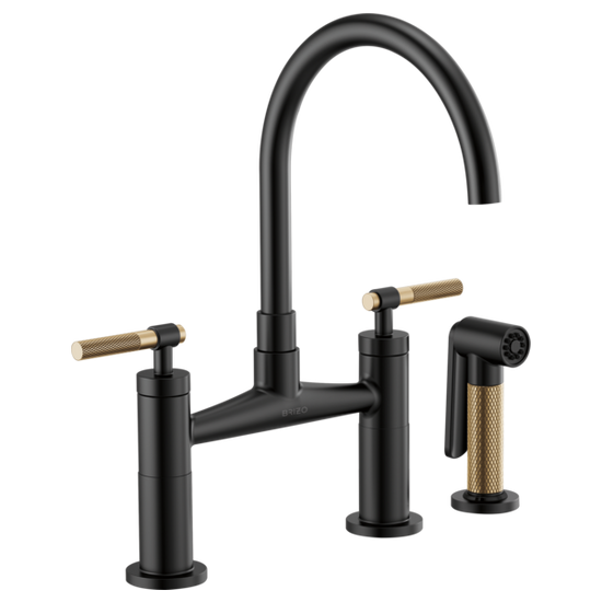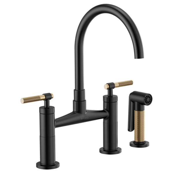 Brizo - Litze - Arc Spout Bridge - Knurled Handle - Matte Black / Luxe Gold