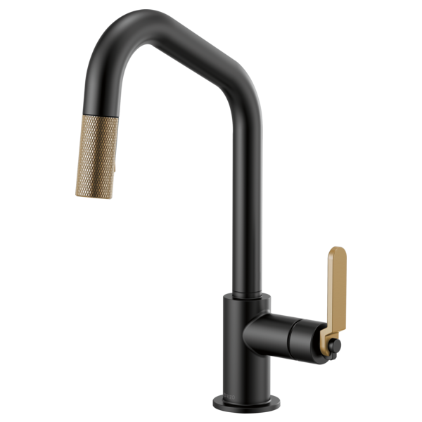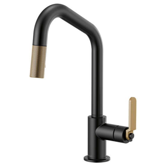 Brizo - Litze - Angled Spout Pull-Down - Industrial Handle - Matte Black/Luxe Gold