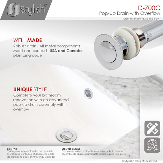 Bathroom Vanity Sink Pop-Up Drain with Overflow in Polished Chrome