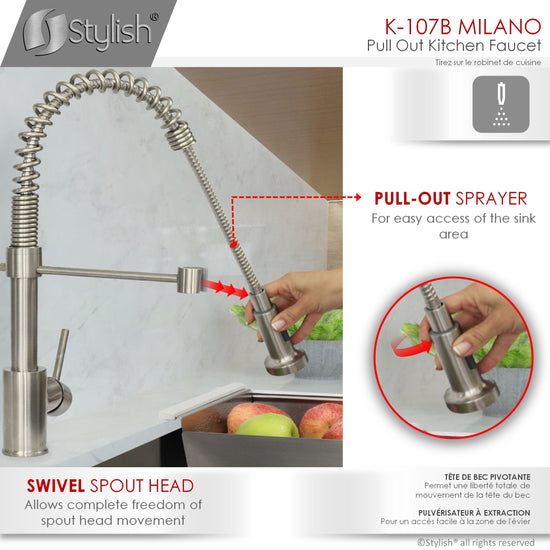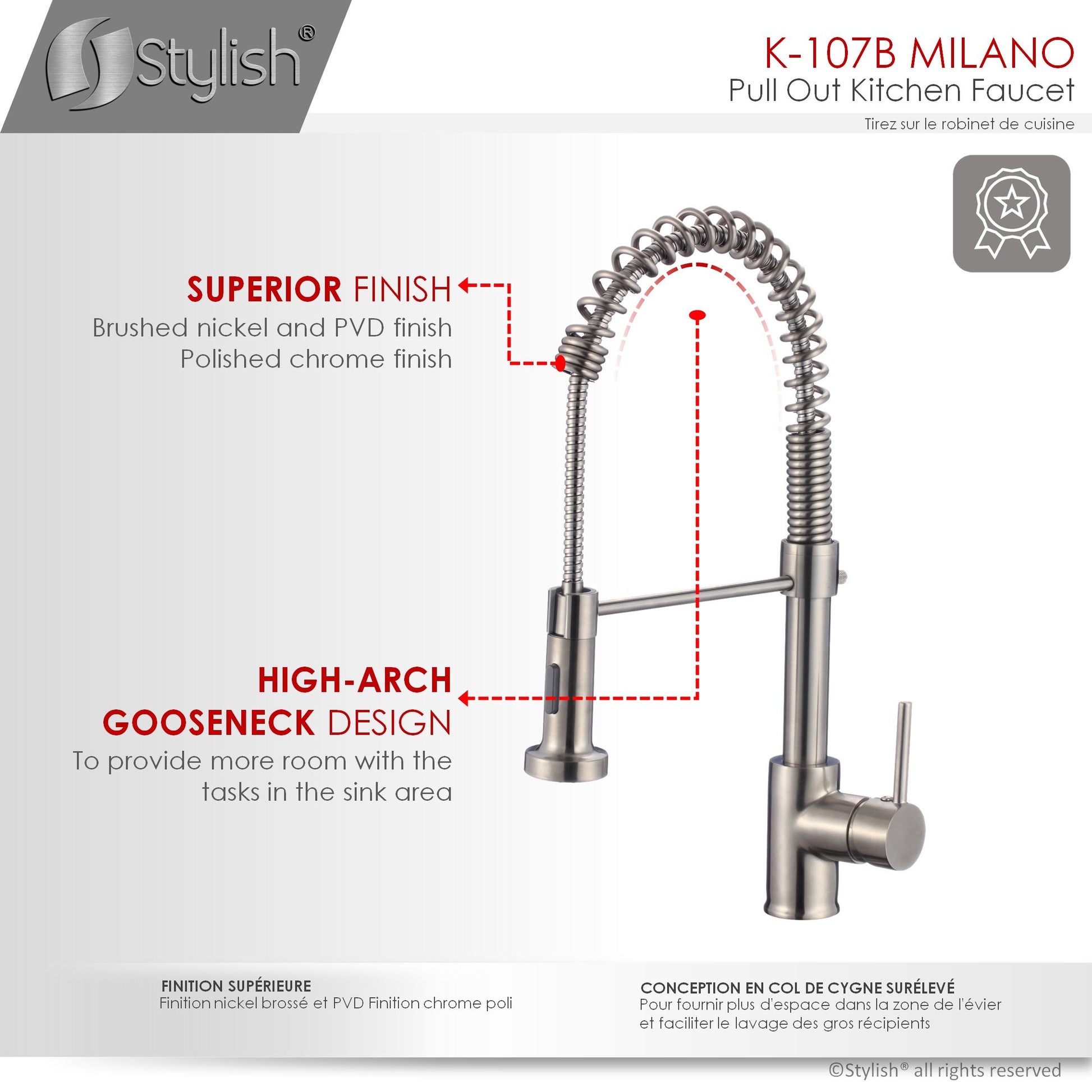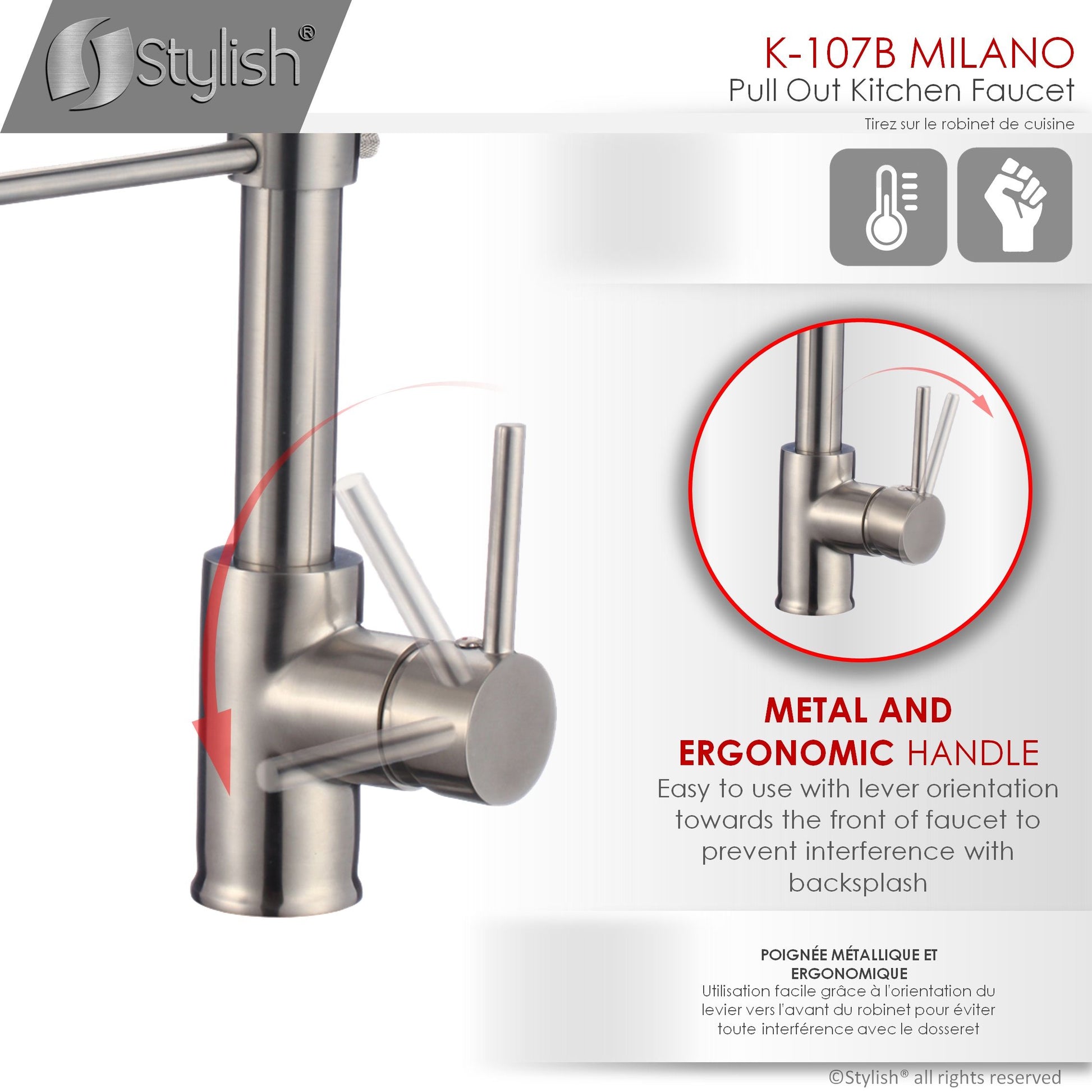 Stylish - Single Handle Pull Out Stainless Steel Kitchen Faucet Brushed Nickel