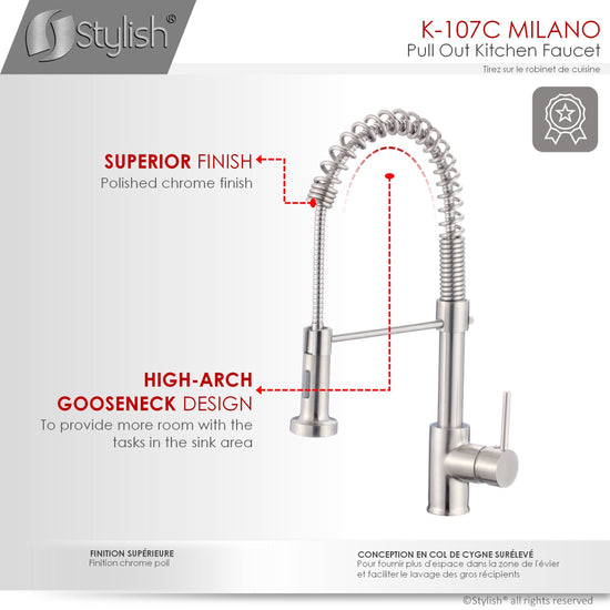 Stylish - Single-Handle Pull-Down Sprayer Kitchen Faucet with Spring Design in Chrome