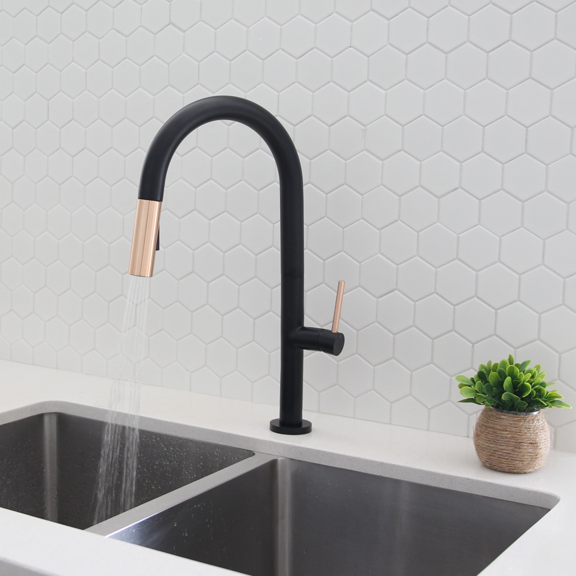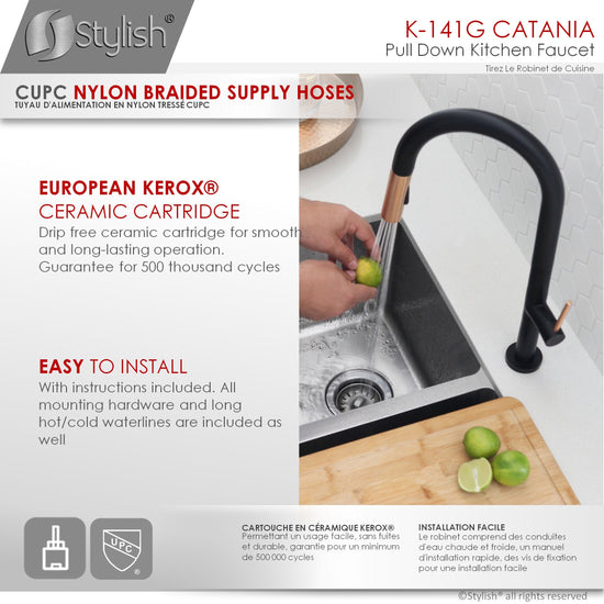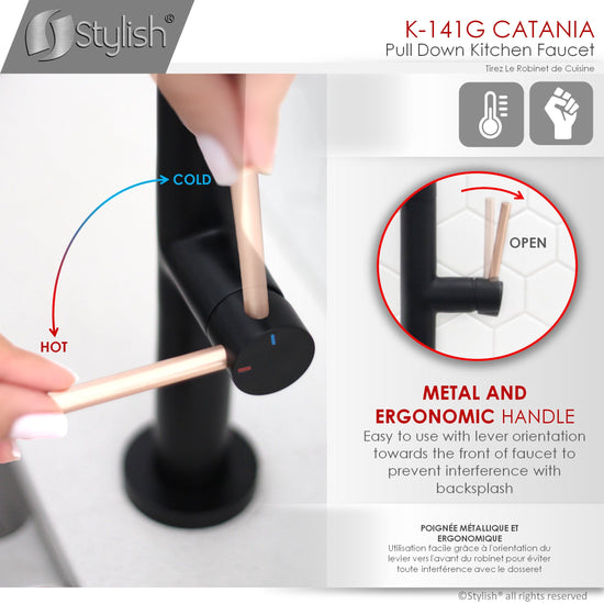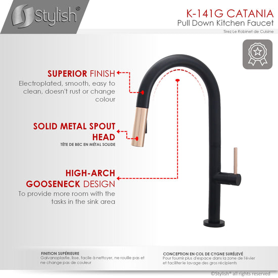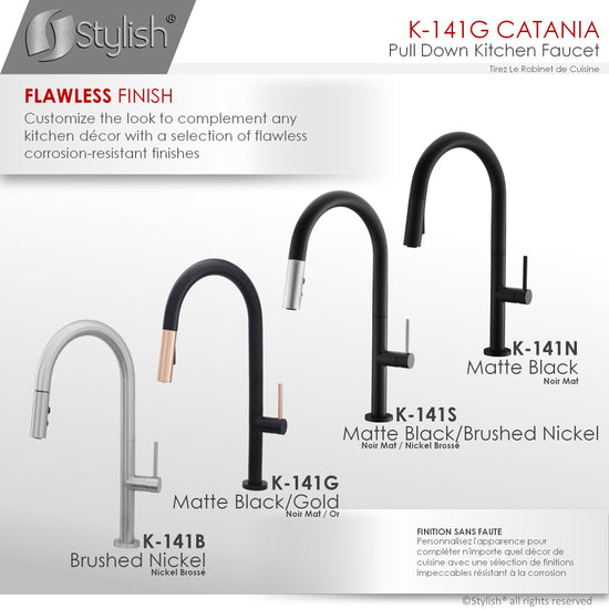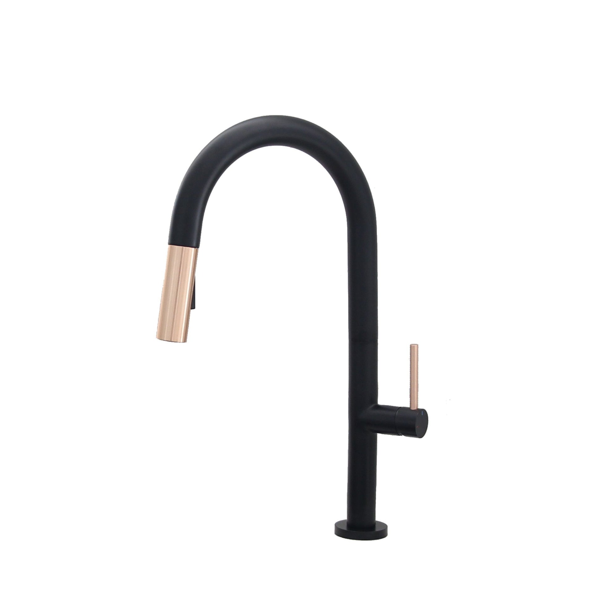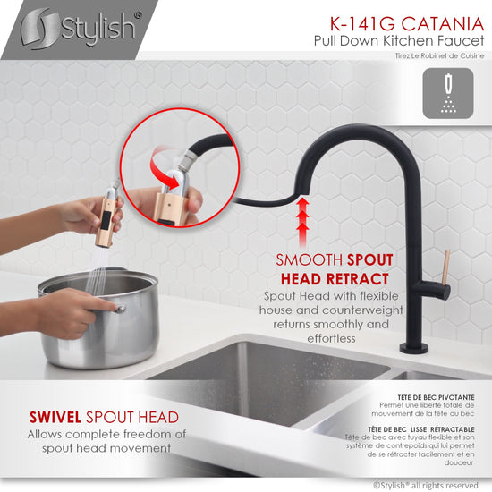 Stylish - Single Handle Pull Down Sprayer Kitchen Faucet in Matte Black/Gold Finish