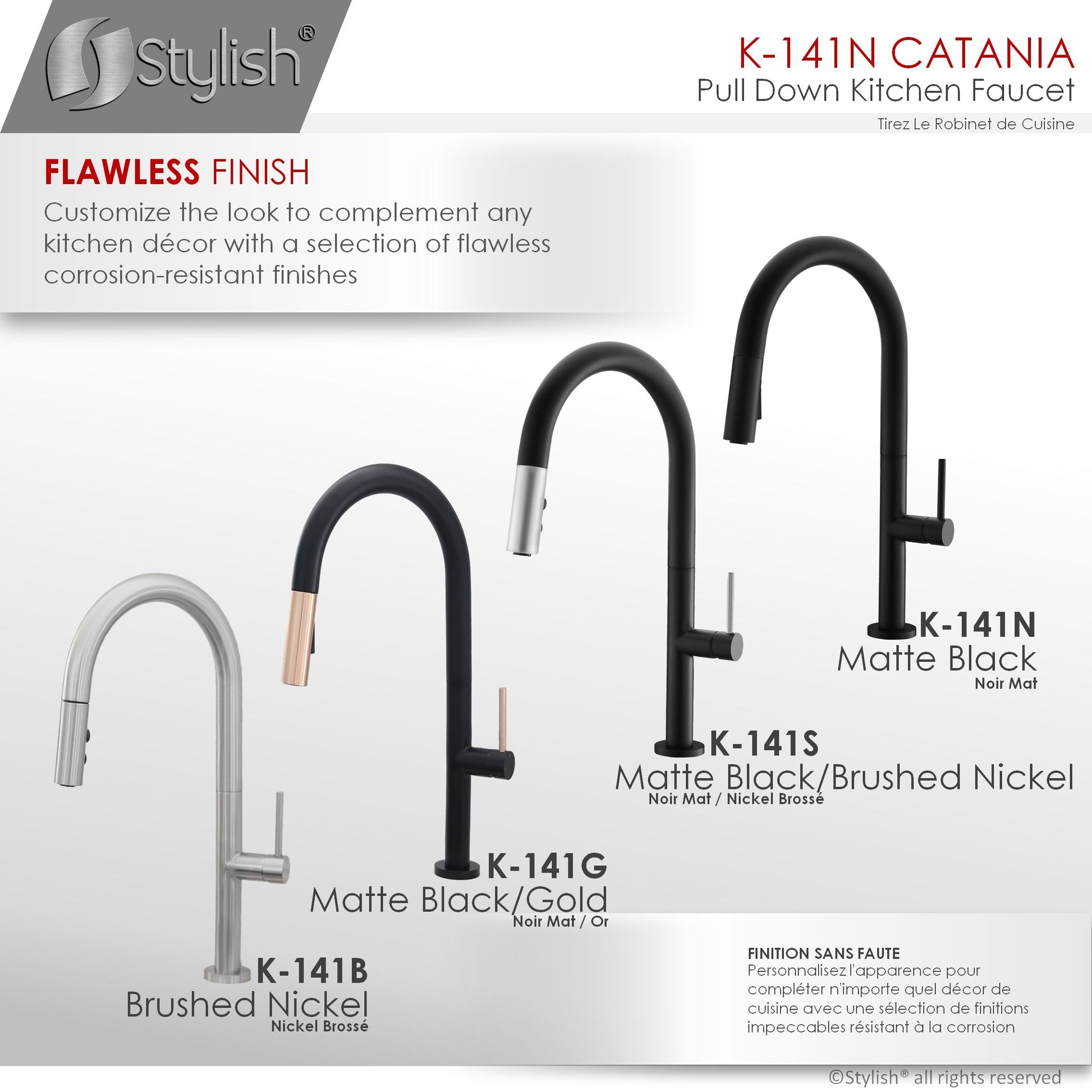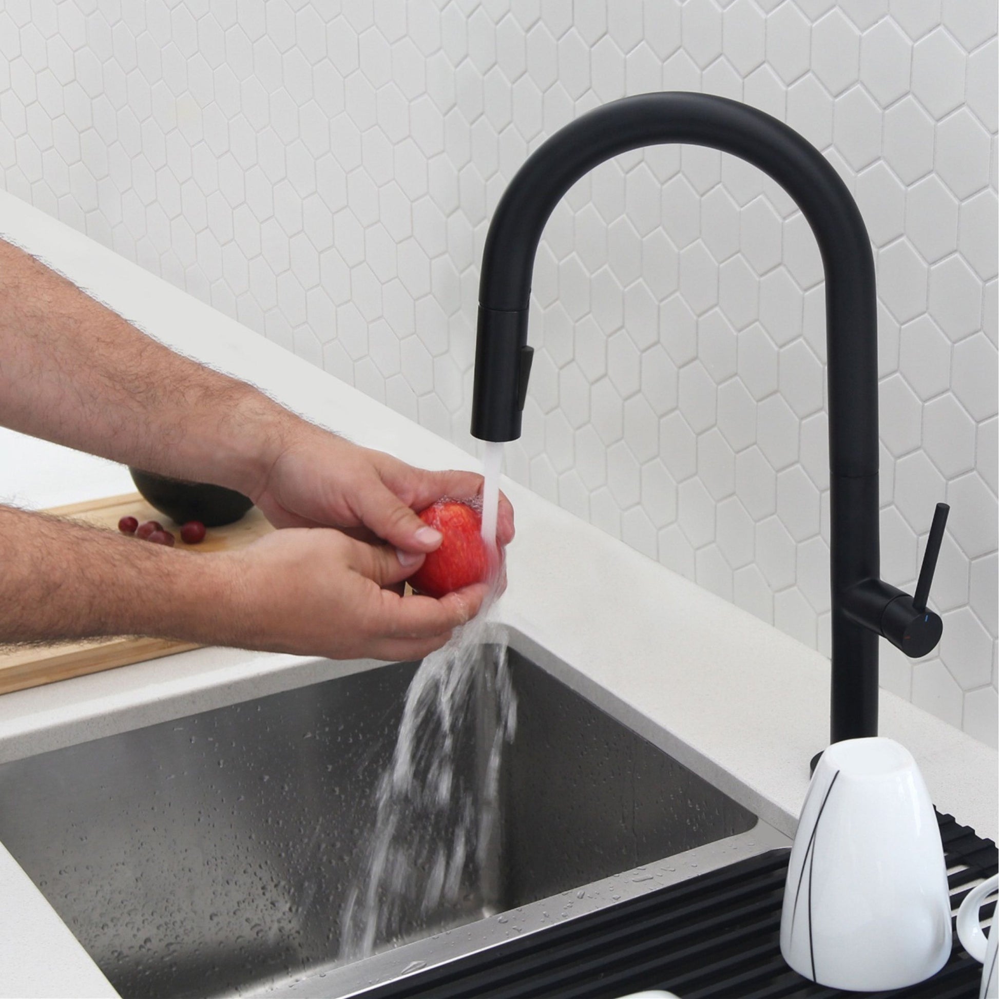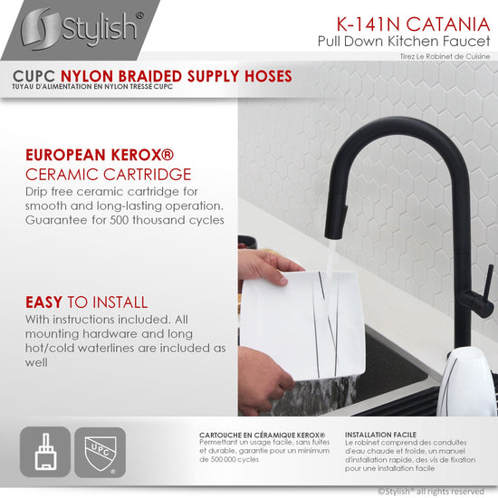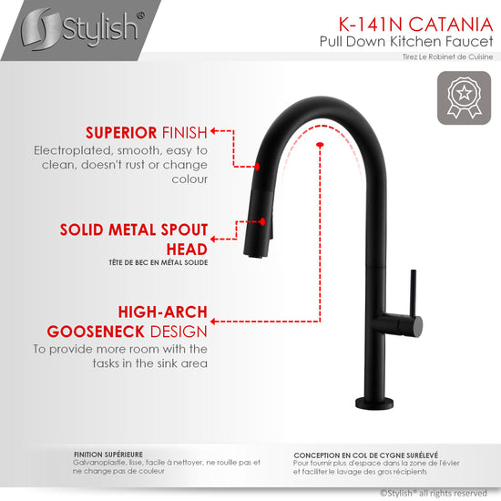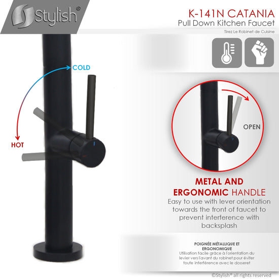 Stylish - Single Handle Pull Down Sprayer Kitchen Faucet in Matte Black Finish