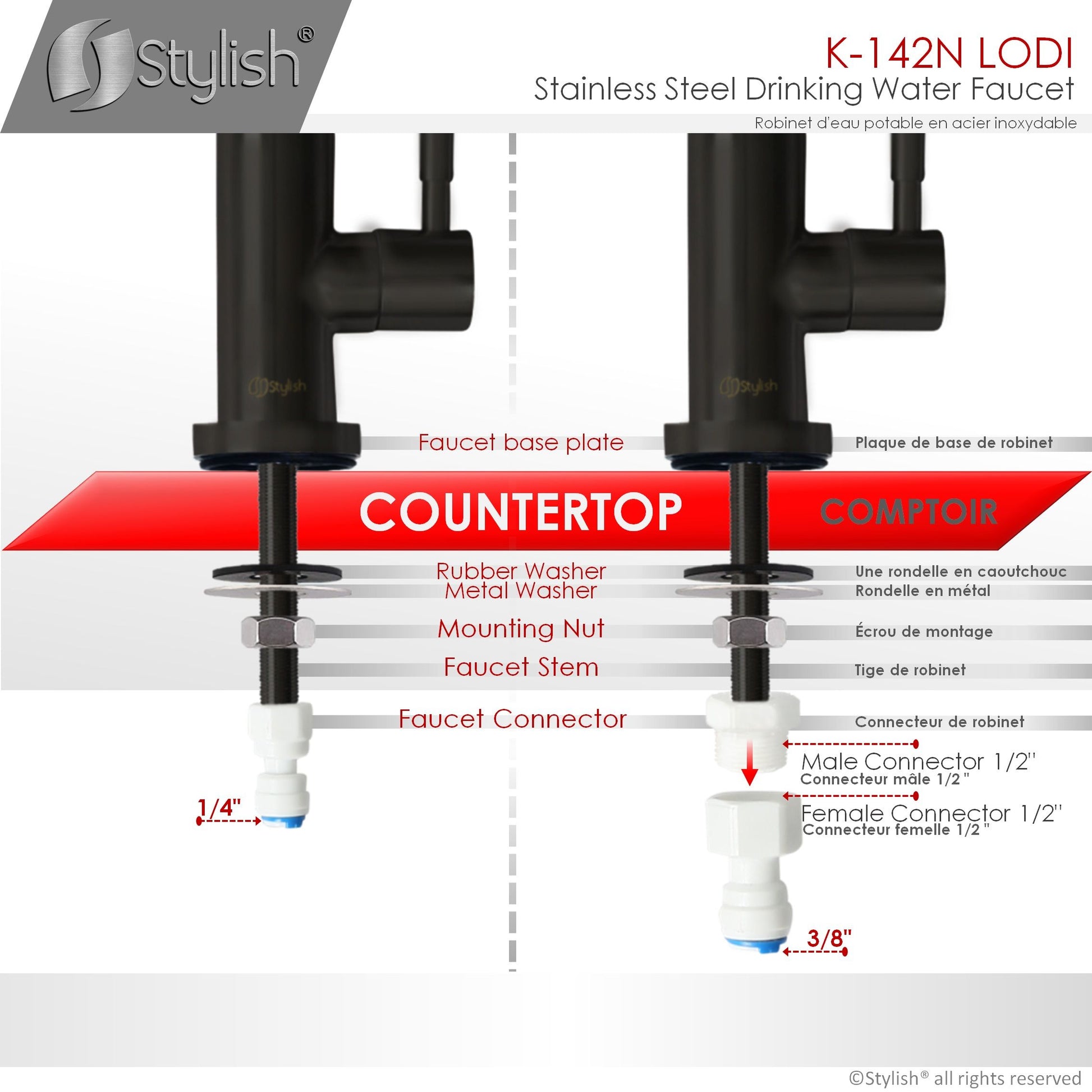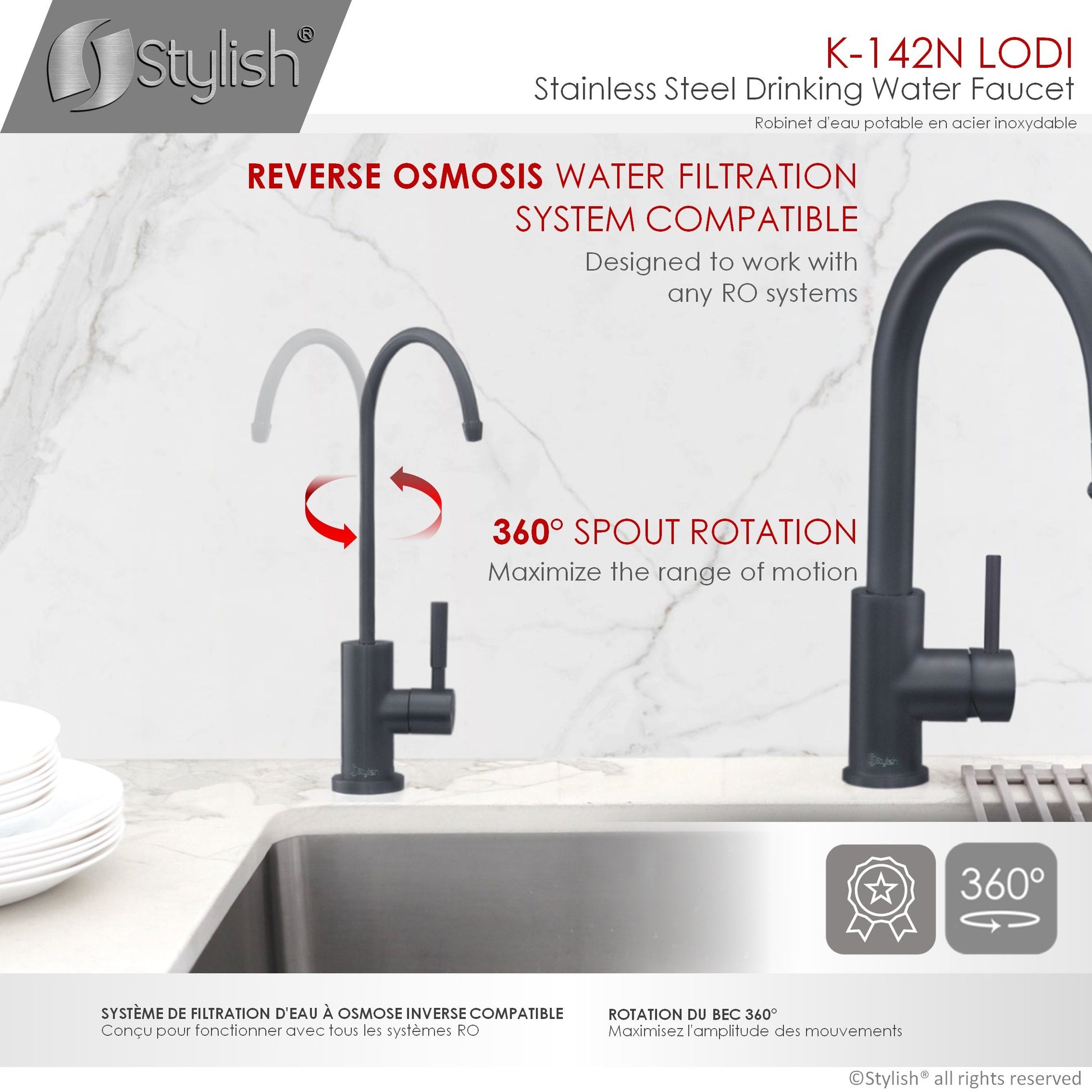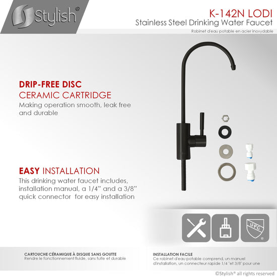 Imagine having the convenience of on-tap water filtration right at your sink. This is now possible with our new cold water tap kitchen faucet. Made from premium stainless steel, this faucet has a sturdy and durable structure. Its beautiful stainless steel finish blends well with modern kitchen decors, it is also available in matte black. This water dispenser is tough and made to last for many years to come. Its slim and minimalistic design will fit perfectly beside your kitchen faucet, it will not take up extra space and it will give you all the benefits of filtered water at the tip of your hands. This cold water tap kitchen faucet fits a standard 23mm hole. It is very easy to install. This amazing cold tap water dispenser has 90 degree single handle for quick and easy water control.